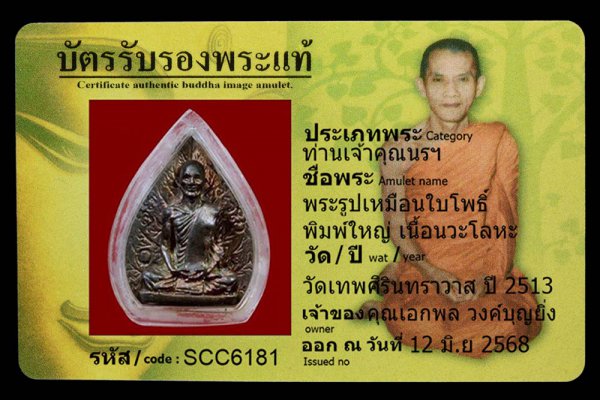 หน้าแรก > ใบเซอร์ทั้งหมด > พระสมเด็จนาคปรก7ชั้น หลังรูปเหมือน บล็อกนิยม