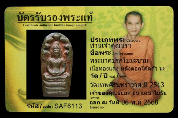 หน้าแรก > ใบเซอร์ทั้งหมด > พระสมเด็จนาคปรก 7 ชั้นหลังรูปเหมือนพิมพ์นิยม