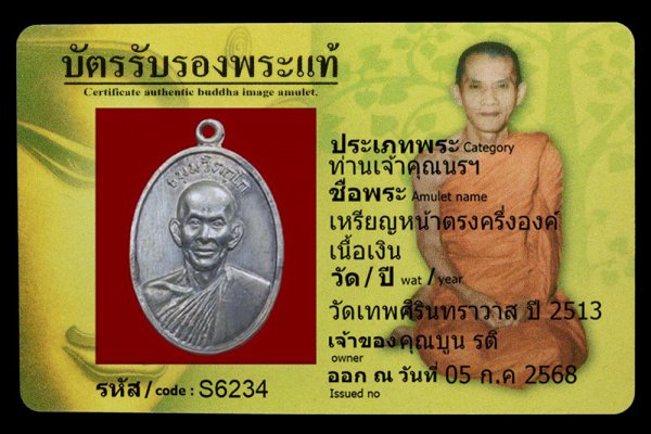เหรียญหันข้างพิมพ์ใหญ่เนื้อเงิน หลังมีรูปสี พร้อมเลี่ยมทองเดิมจากวัดฯ รพร้อมบัตรรับรองพระแท้ราคา : โทรถาม บาท
